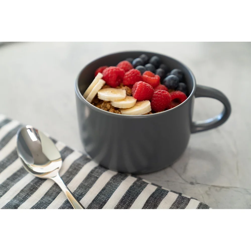 Description: When a standard cup isn’t enough, these oversized vessels accommodate generous servings of coffee, broth, or morning grains. The wide-mouth design makes them easy to hold with both hands on a cold day, providing a sense of utility and comfort. They are built for the rigors of a busy household, transitioning easily from the microwave to the dishwasher. The matte stoneware construction is chip-resistant and features a low-profile base for better stability on various surfaces.